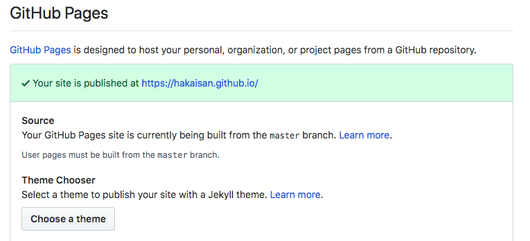GitHub Pages set <username>.github.io (My case:hakaisan.github.io) as the top page.